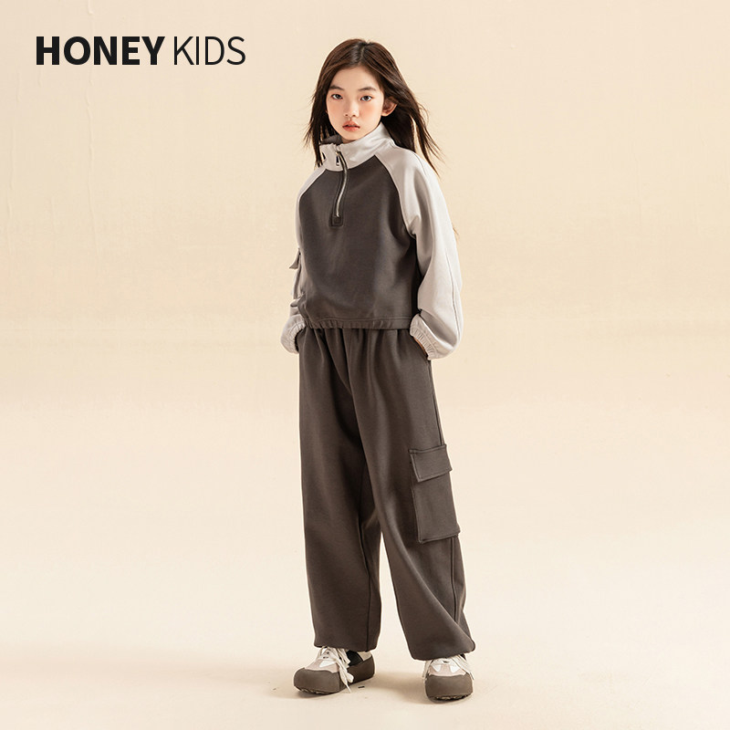 冬装女童套装2025新款韩版学院风休闲卫衣宽松工装裤两件潮流时尚