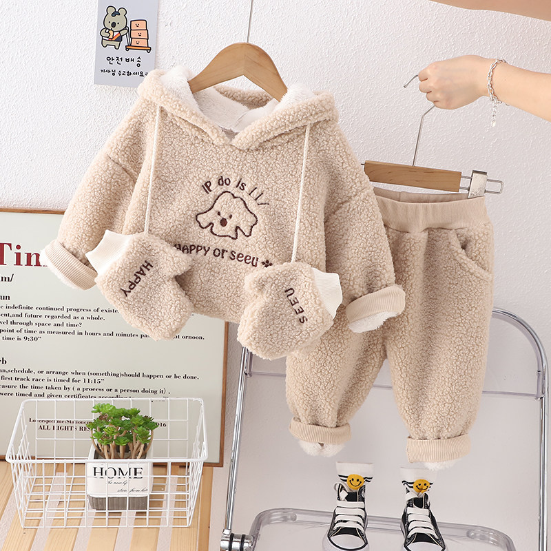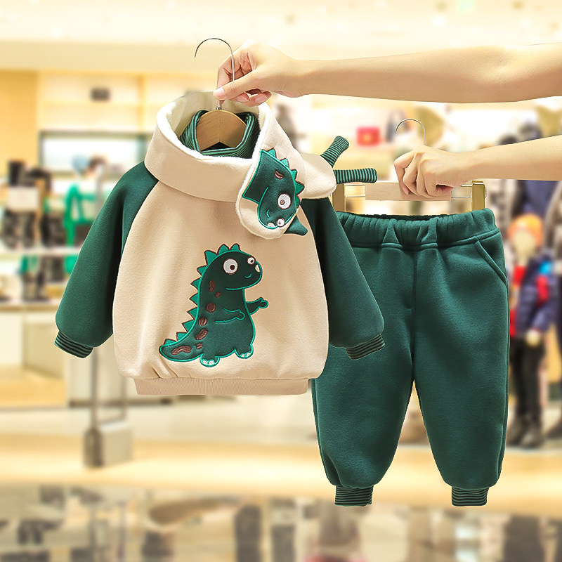 嘟嘟家宝宝加绒套装冬季儿童卫衣两件套男童秋冬款女童衣服冬装潮