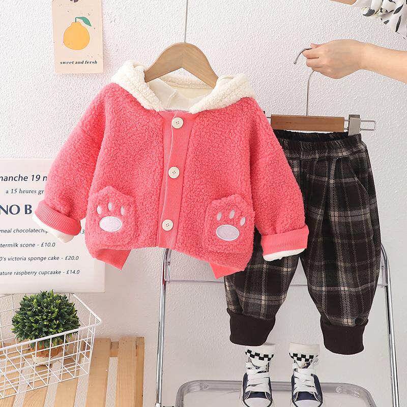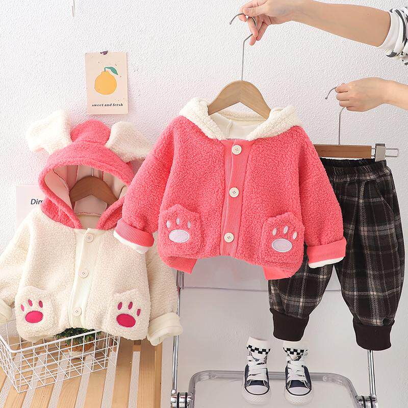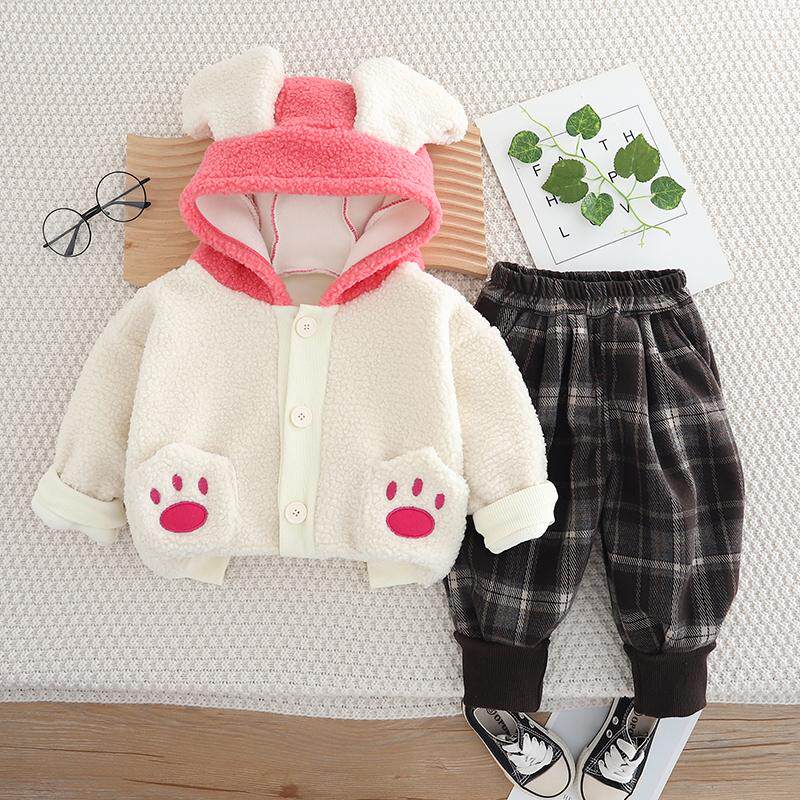 女童冬装2026新款套装小童冬季加绒宝宝萌趣连帽童装潮儿童两件套