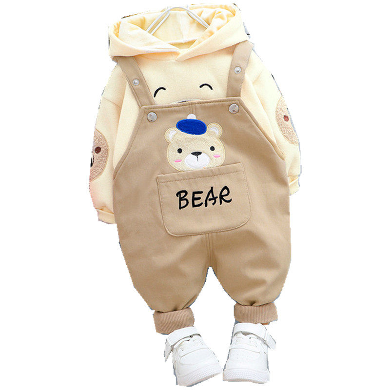婴儿秋冬装两岁半女宝宝洋气保暖卫衣套装男童加绒背带裤两件套潮