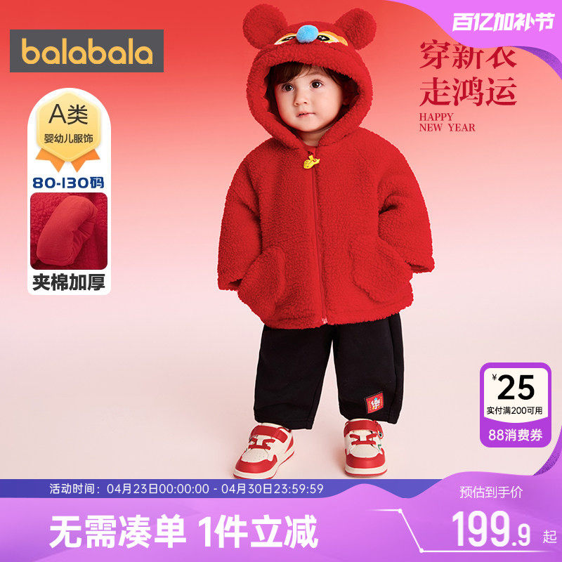 巴拉巴拉宝宝拜年套装男童女童红色棉衣两件套冬装新款童装儿童潮