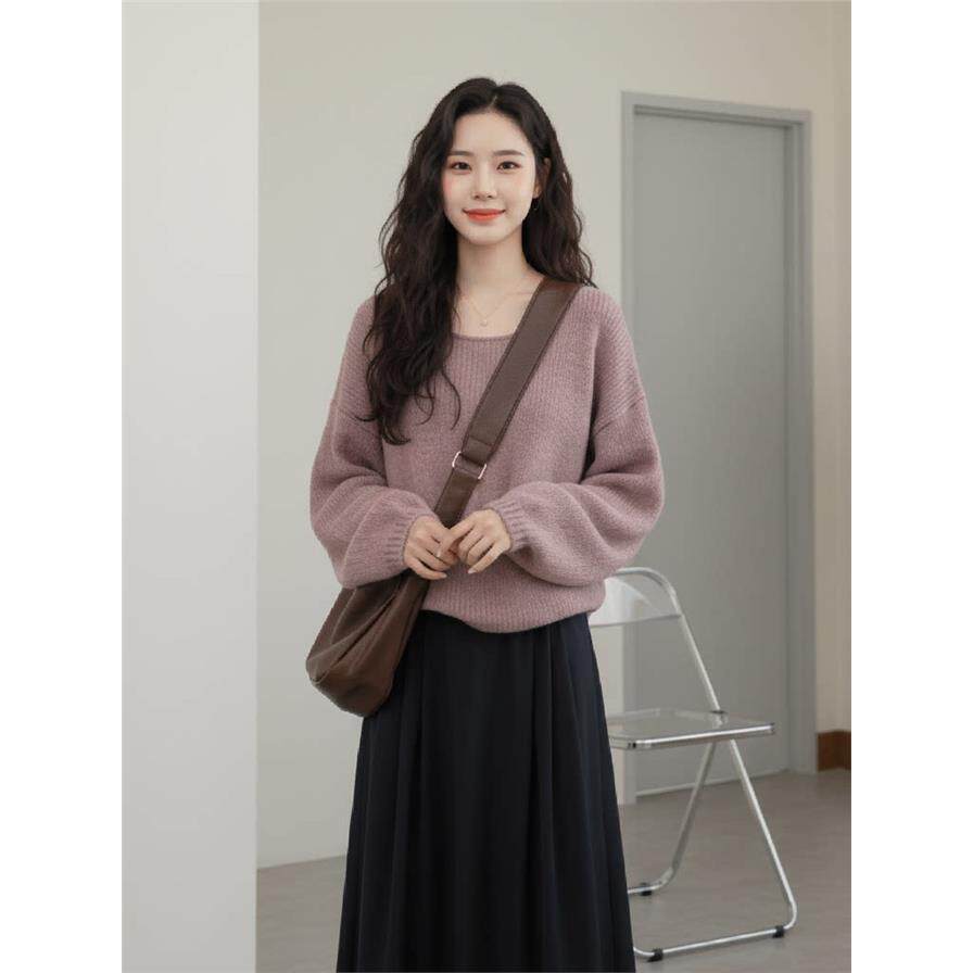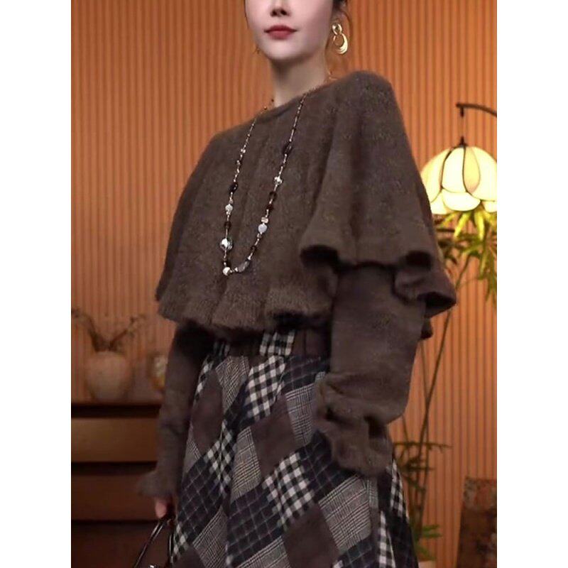 韩系慵懒风套装女洋气针织斗篷巨好看的两件套冬装新款长袖上衣潮
