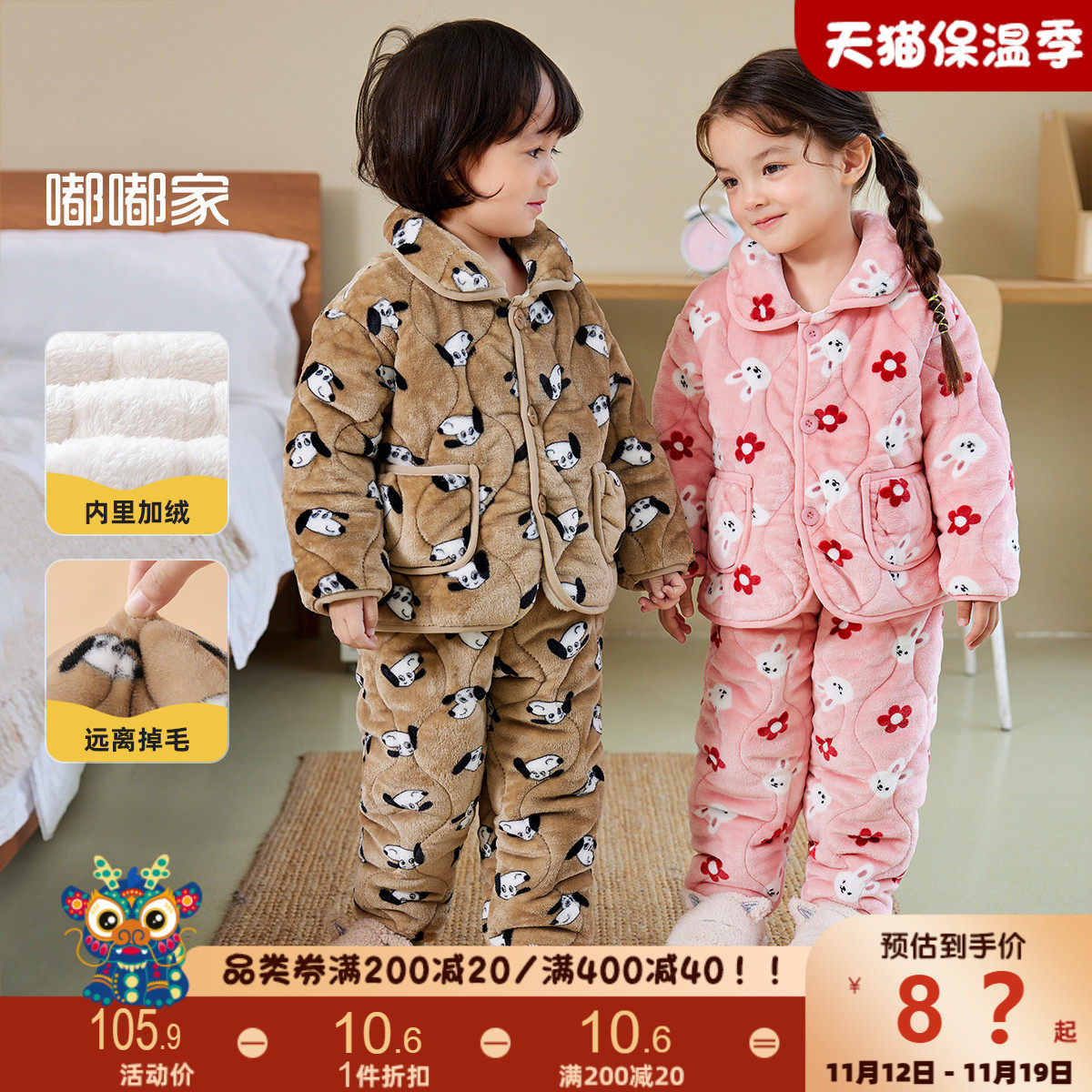 儿童家居服套装秋冬男童法兰绒睡衣睡裤冬季女童冬装两件套加厚潮