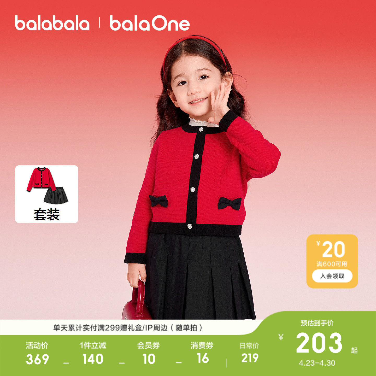 巴拉巴拉童装儿童套装女童拜年服2026新款冬装小香风两件套红色潮
