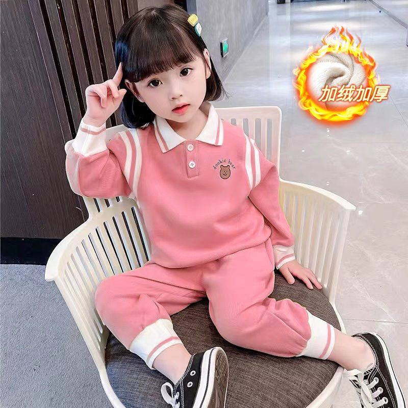 套装加绒加厚新款女童春秋冬装洋气网红装儿童宝宝小童装两件套潮