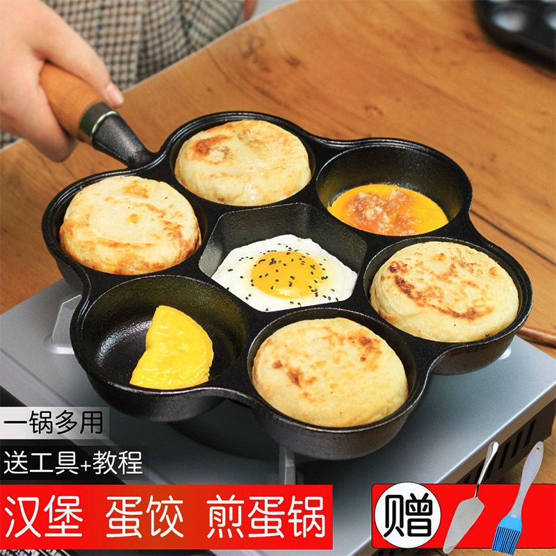 七孔煎锅铸铁鸡蛋汉堡机加深煎蛋模具家用不粘平底锅无涂层蛋饺锅