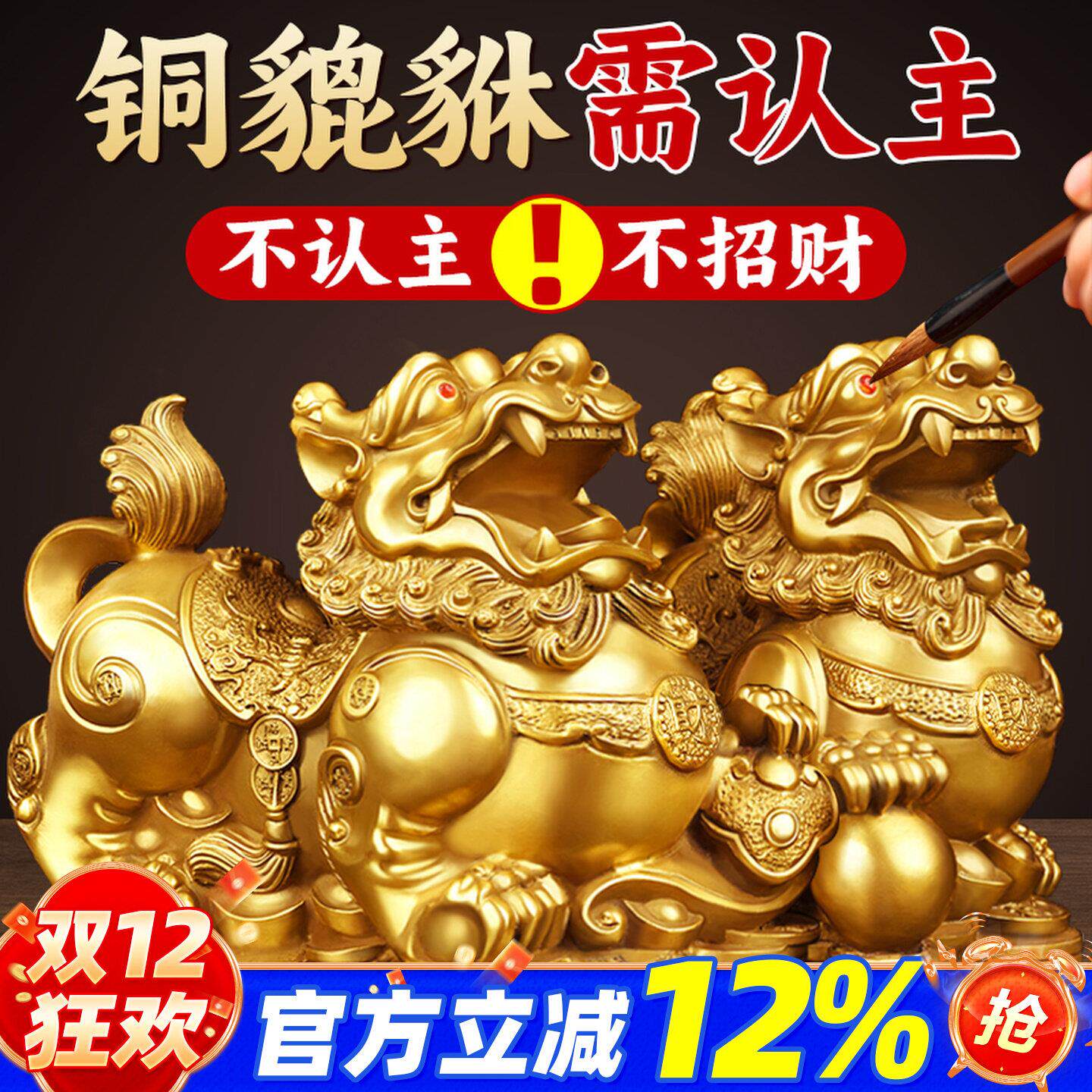 - 纯铜貔貅摆件一对