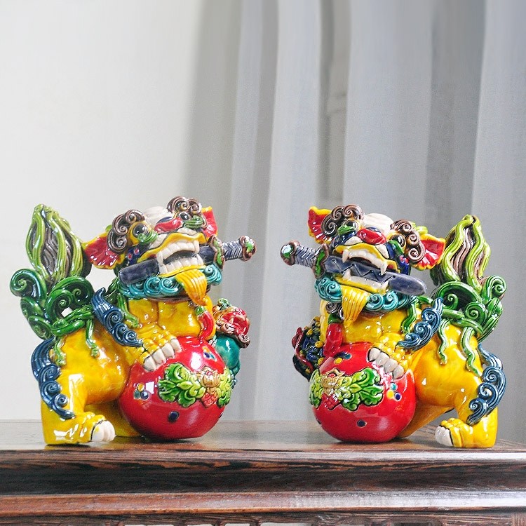 新中式玄关客厅装饰仿古拴马桩镇宅狮子一对貔貅招财麒麟落地摆件