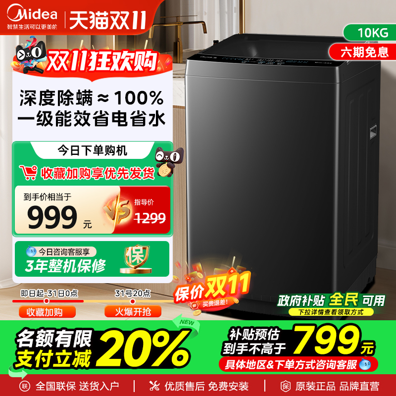 全民补贴美的洗衣机12/10/9kg全自动家用大容量除螨洗脱一体波轮