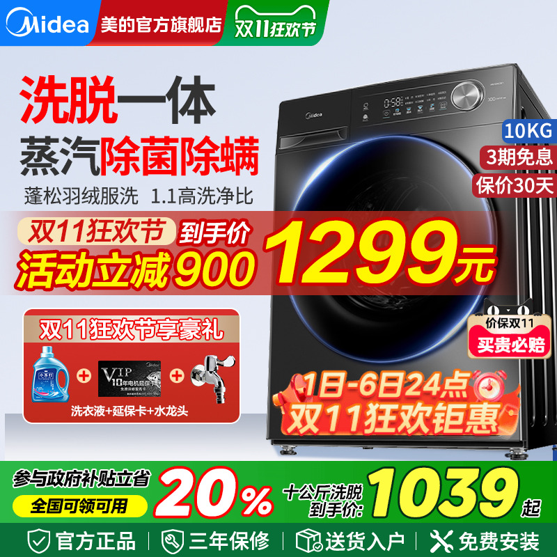 以旧换新补贴美的洗衣机10kg大容量全自动家用滚筒洗烘一体机11F