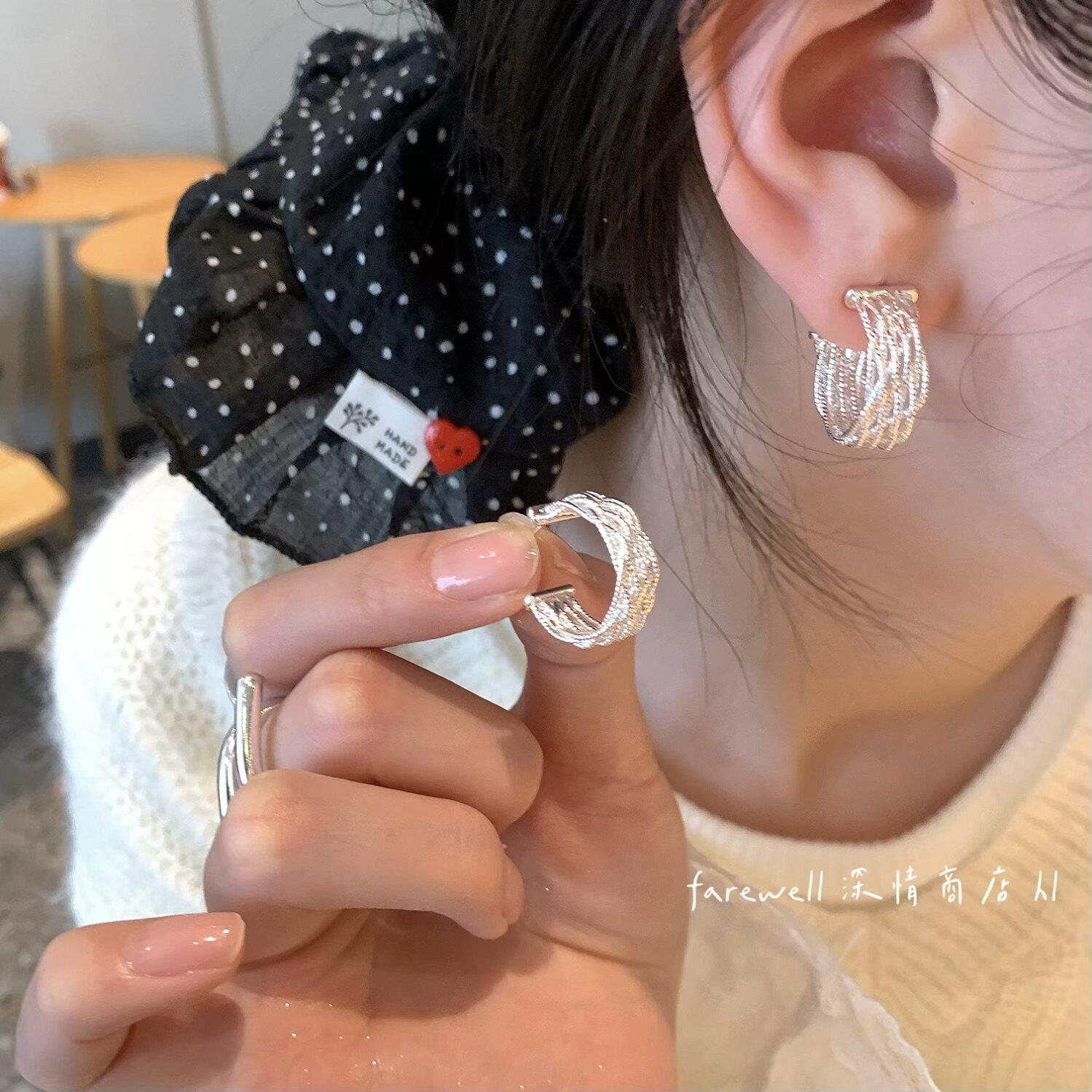 C圈店主推荐~银质编织耳环女纹理圆环耳钉女小众高级感复古耳饰