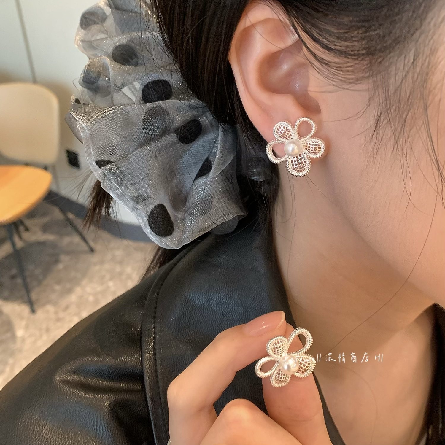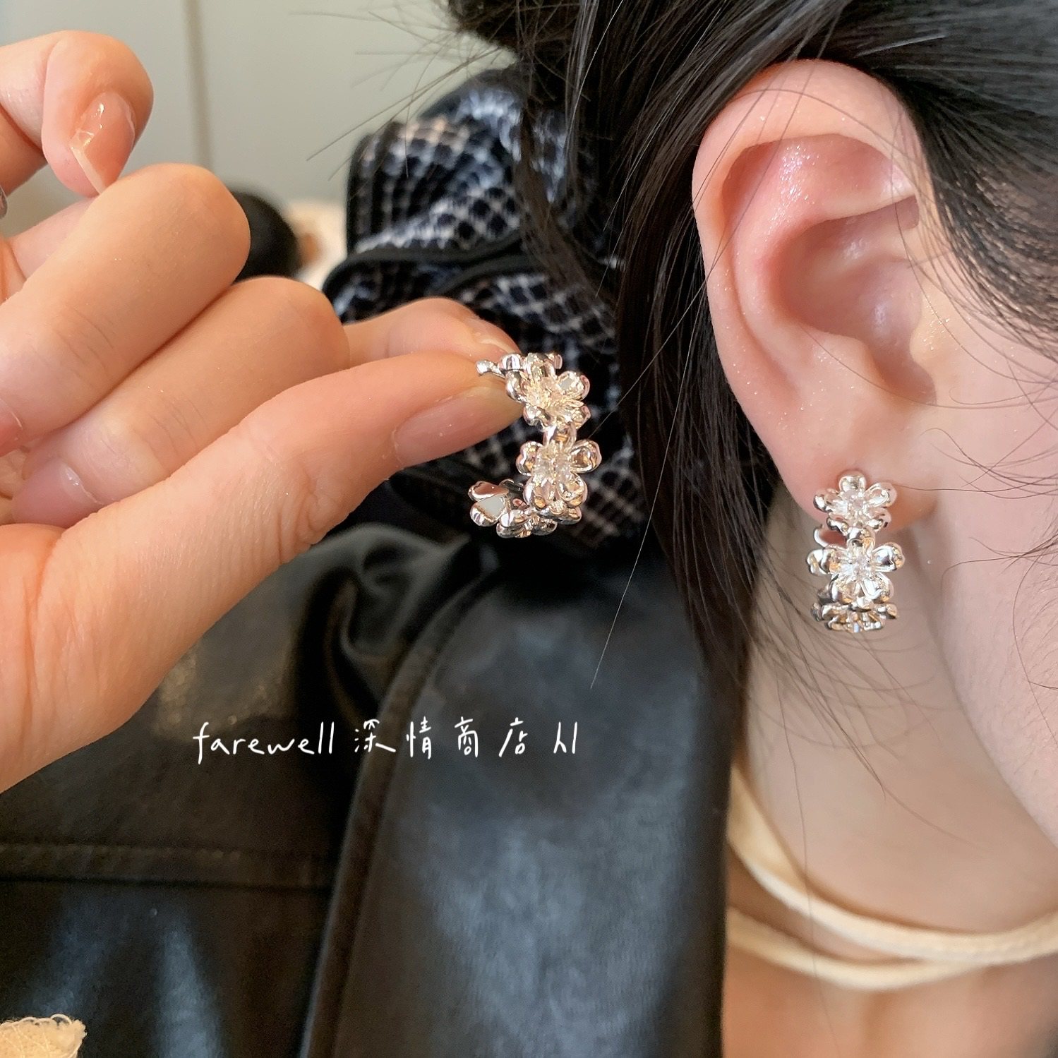 少女风银色花朵耳钉女银质感高级感耳环2025新款精致百搭日常耳饰