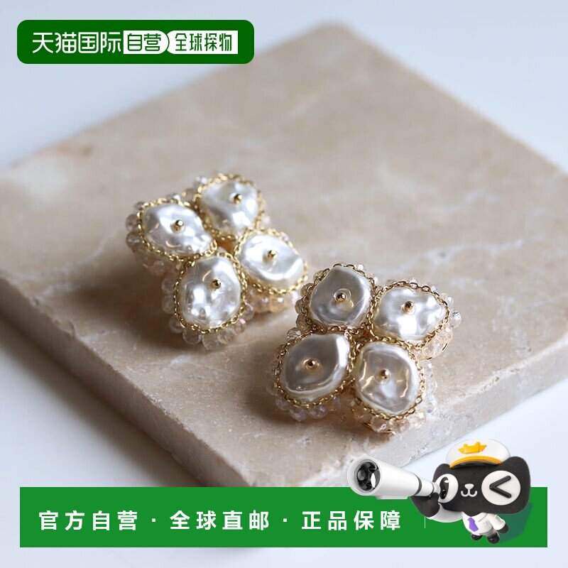 1h可退 日本直邮cui-cui 天然淡水珍珠水晶镀金银质进口耳钉 8513