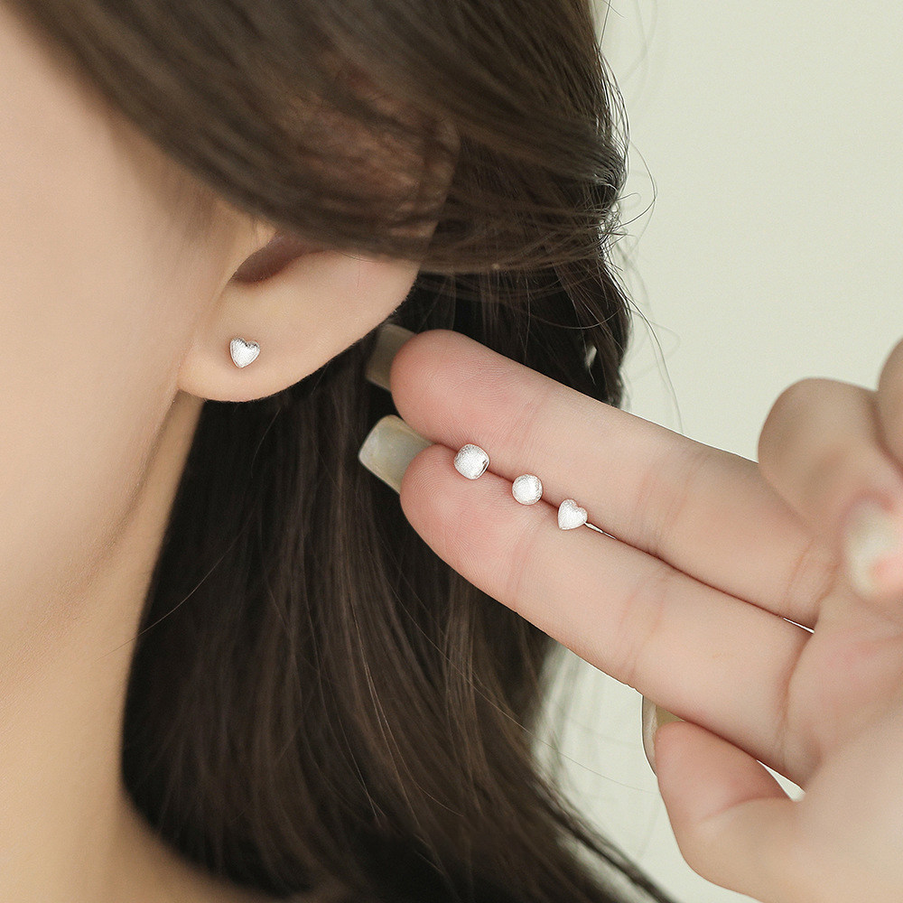 小巧银色气质心形耳钉 欧美复古烧银质感vintage stud earring
