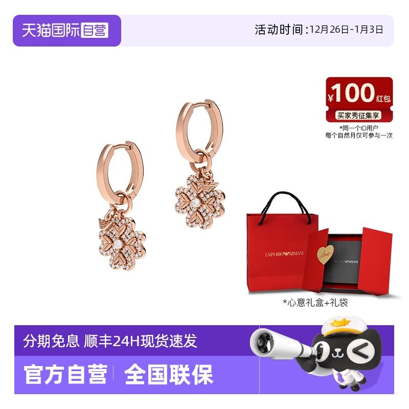 【自营】Armani阿玛尼四叶草幸运芯耳钉银质女轻奢气质送女友礼物