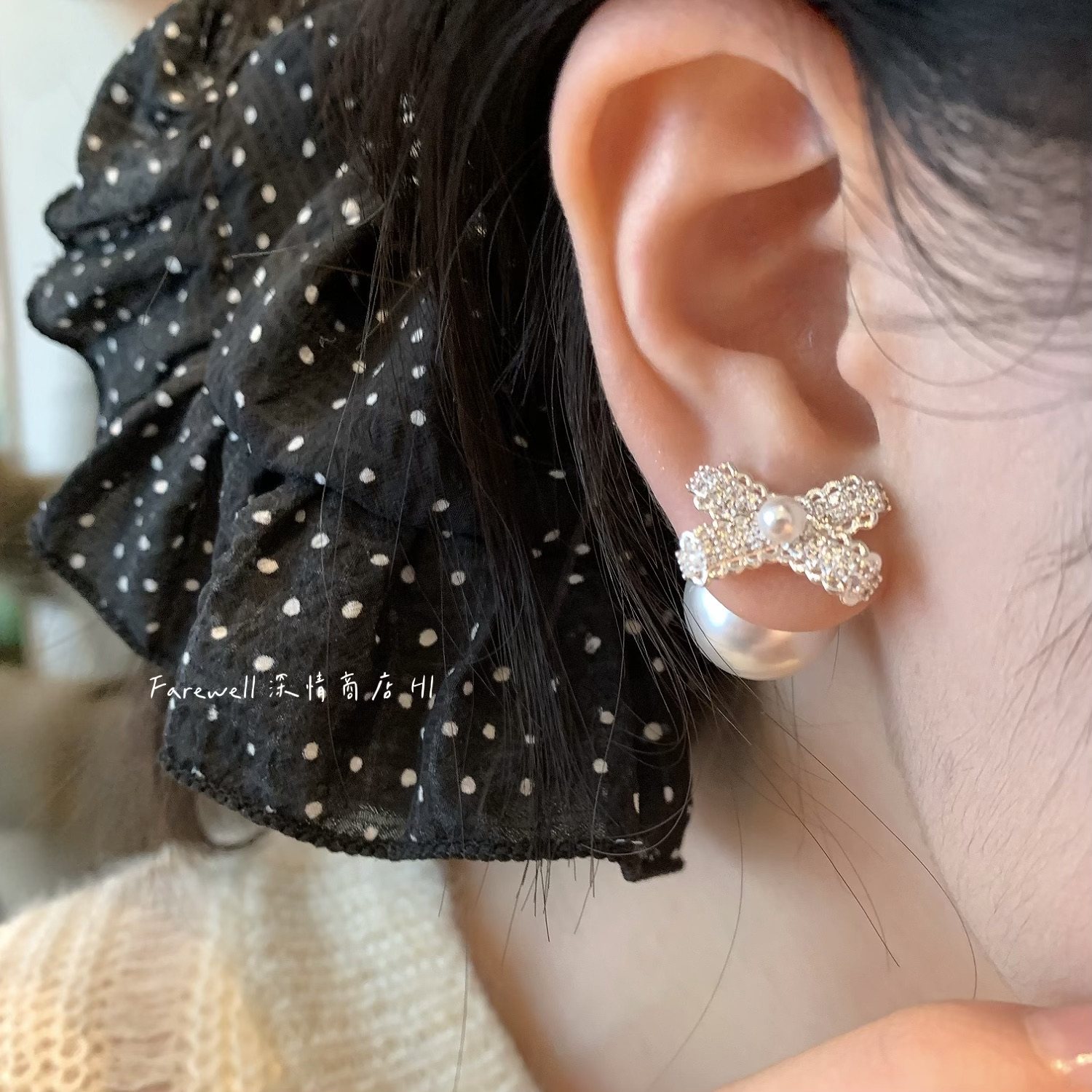 蝴蝶结轻奢高级感耳环 珍珠耳钉女小众银质两戴耳饰2025新款爆款