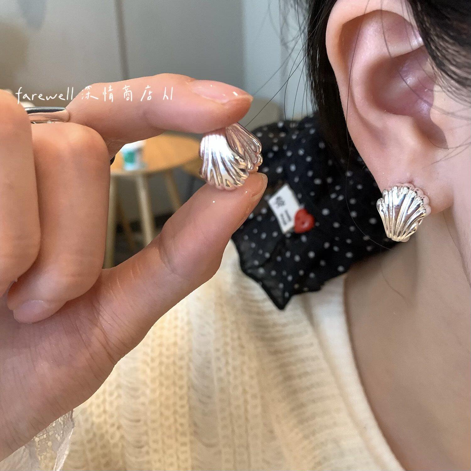 韩国博主fever同款复古施家大颗强光炫彩珍珠925银质感耳钉耳饰女