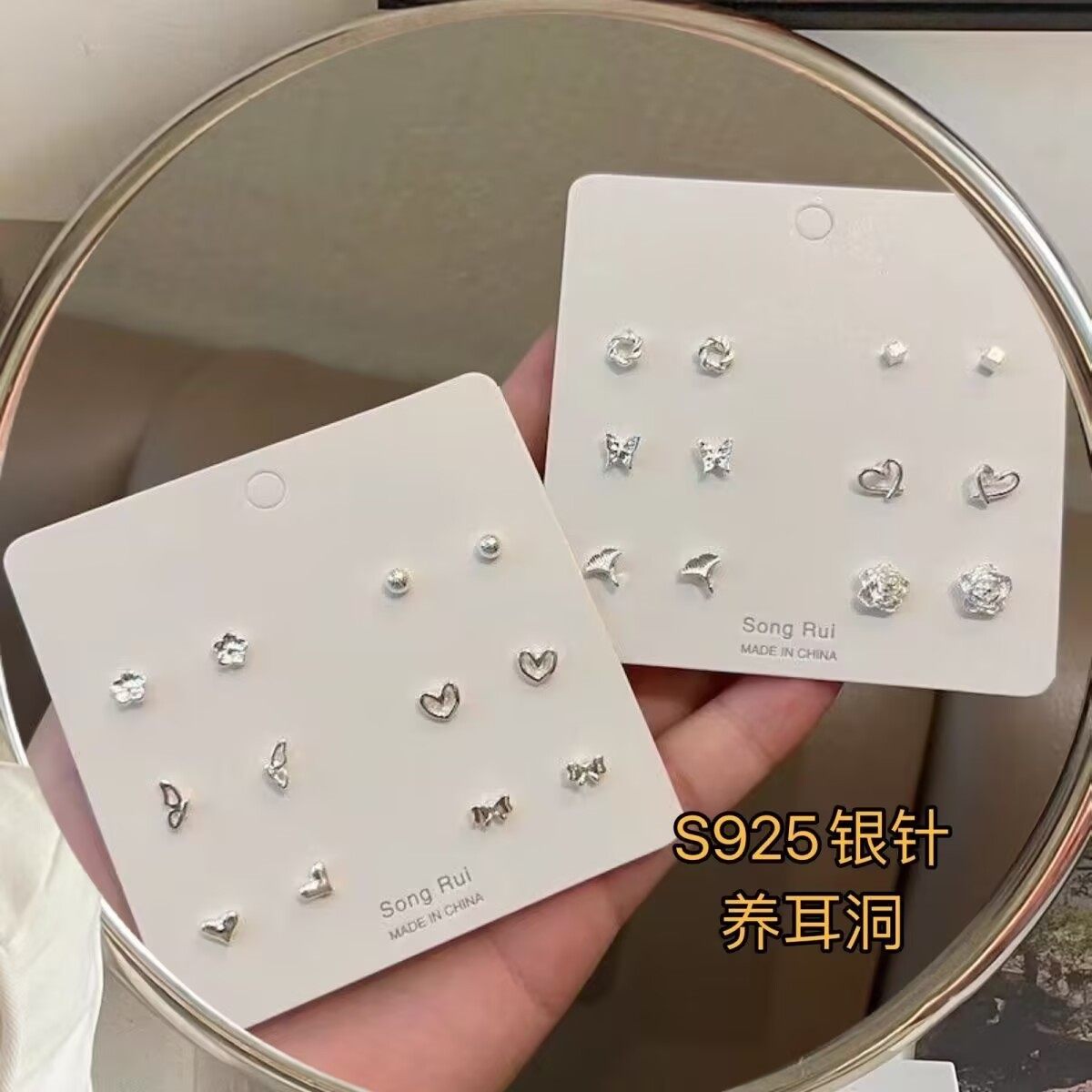 爆款养耳洞耳钉女2024新款爆款简约小巧耳饰银质耳钉小众精致套装