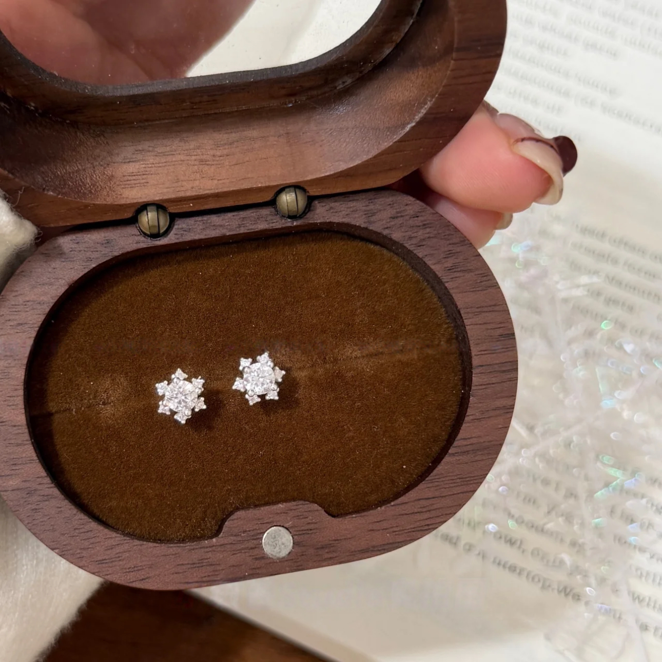 足银999雪花镶嵌锆石银质耳钉女轻奢简约气质感耳饰百搭送女友