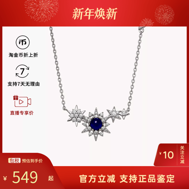 【官方正品】ARMANI/阿玛尼首饰 夜空蓝星月银质细链项链手链耳钉