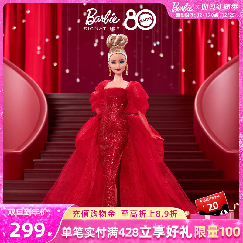 【重磅上新】芭比娃娃美泰80周年纪念款典雅金发珍藏款手办玩具
