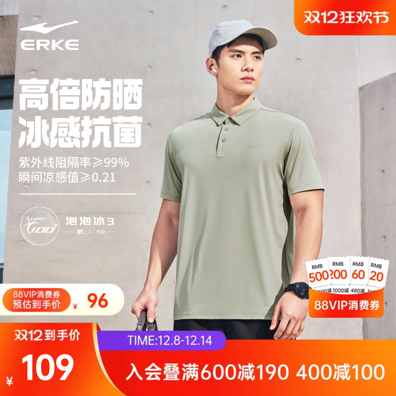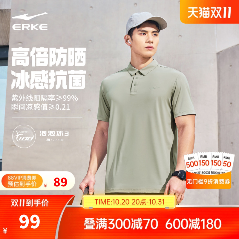 鸿星尔克短袖男2025夏季新款男士冰丝防晒polo衫运动t恤爸爸男装