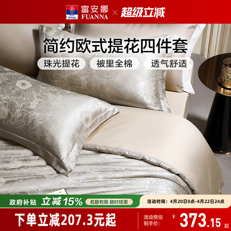 富安娜家纺轻奢高级感提花四件套新品床单亲肤可裸睡被套床上用品