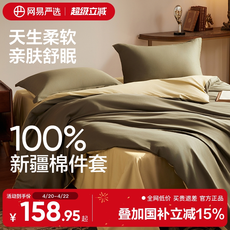 网易严选新疆四件套全棉床单被套2025新款被罩纯色100纯棉高级感