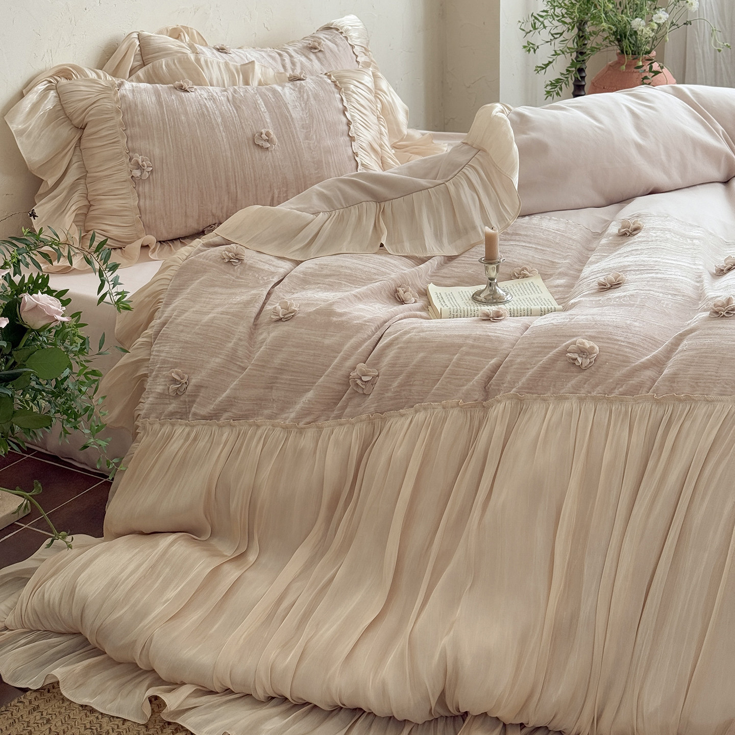 法式复古高级全棉四件套公主风纯棉褶皱荷叶花边被套床单少女床品