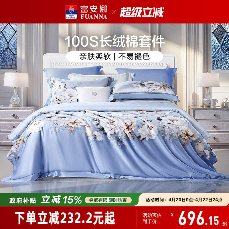 富安娜家纺100支长绒棉四件套全棉纯棉被套高级轻奢欧式床上用品