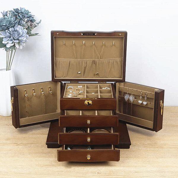 2023新款复古品木质高档欧式首饰盒手饰收纳盒多层精致带锁大容量