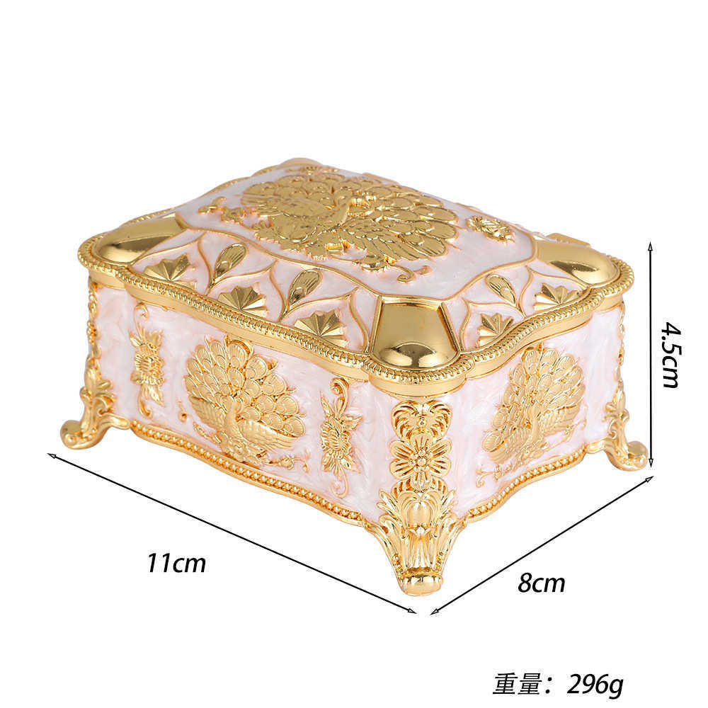 宝盒欧式首饰盒精美金属收纳盒首饰高档珐琅珠彩孔雀公主结婚创意