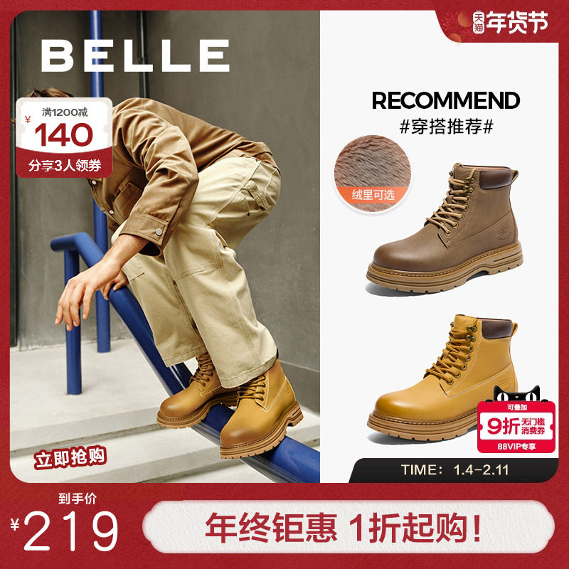 百丽男鞋户外加绒工装靴男靴冬新款马丁靴休闲短靴大黄靴8MR01DD4