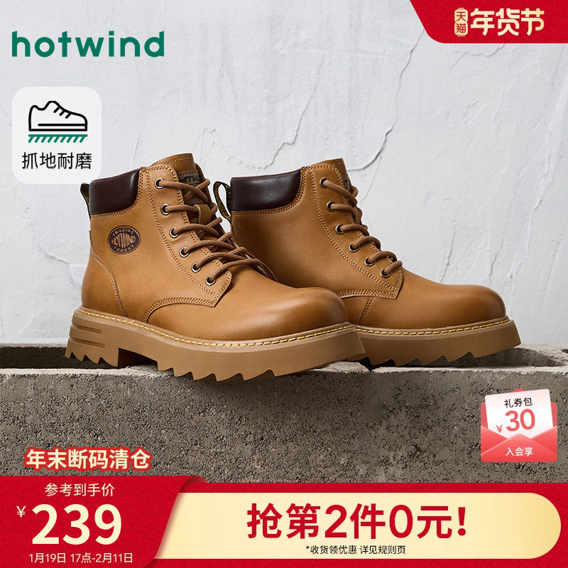 HLA/海澜之家男鞋高帮冬季潮流皮靴户外马丁靴英伦风加绒工装男靴