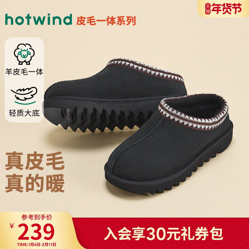 热风男鞋2025年冬季新款男士加绒百搭雪地靴短筒皮毛一体男靴子