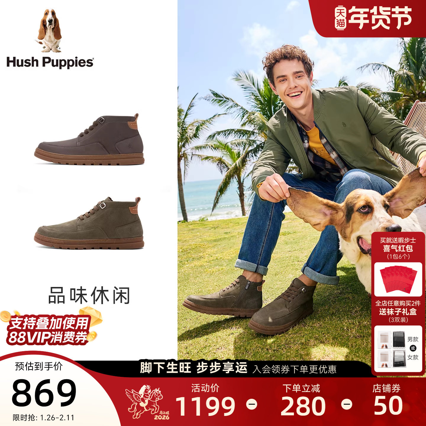 暇步士休闲男靴2025冬新款真皮免系带短靴复古高帮男鞋时尚低筒靴
