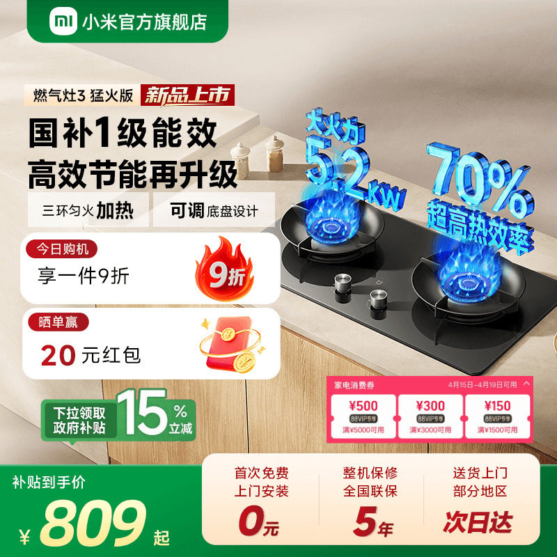 [新品] 小米官方米家燃气灶3猛火版天然气家用灶具台嵌两用大火力
