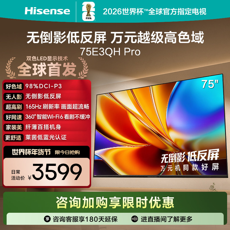 海信电视E3QH Pro 75英寸 万元级高色域抗反光 以旧换新电视机