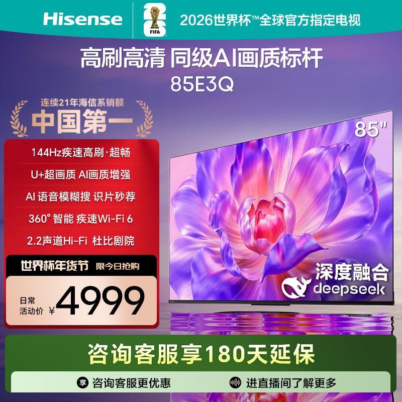 海信电视85E3Q 85英寸 AI智能高刷 Wi-Fi 6以旧换新E3N升级电视机