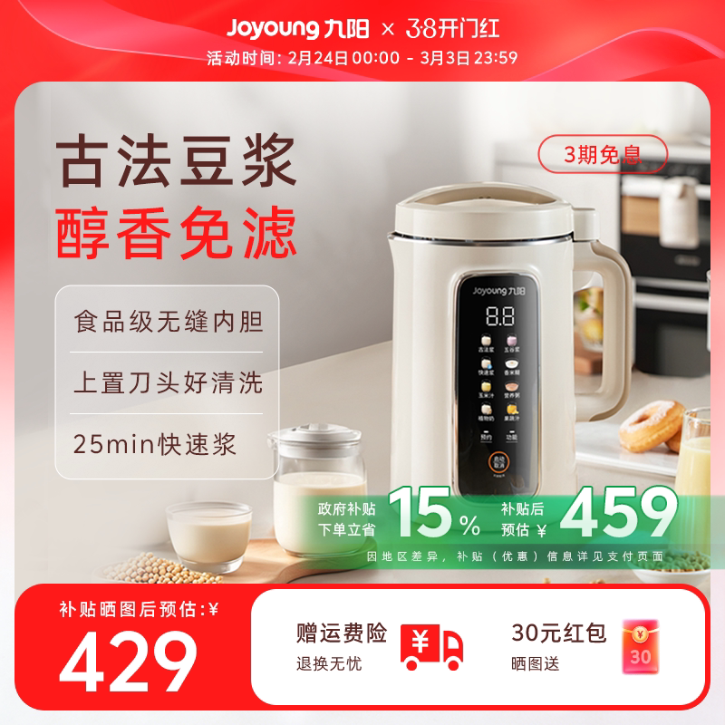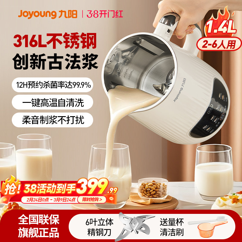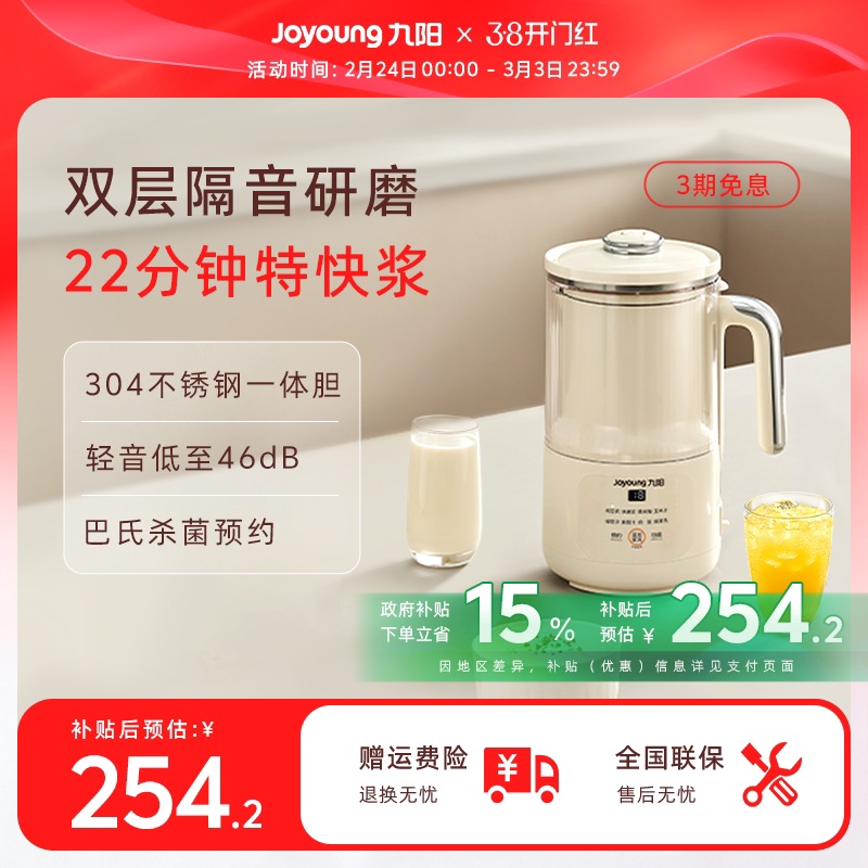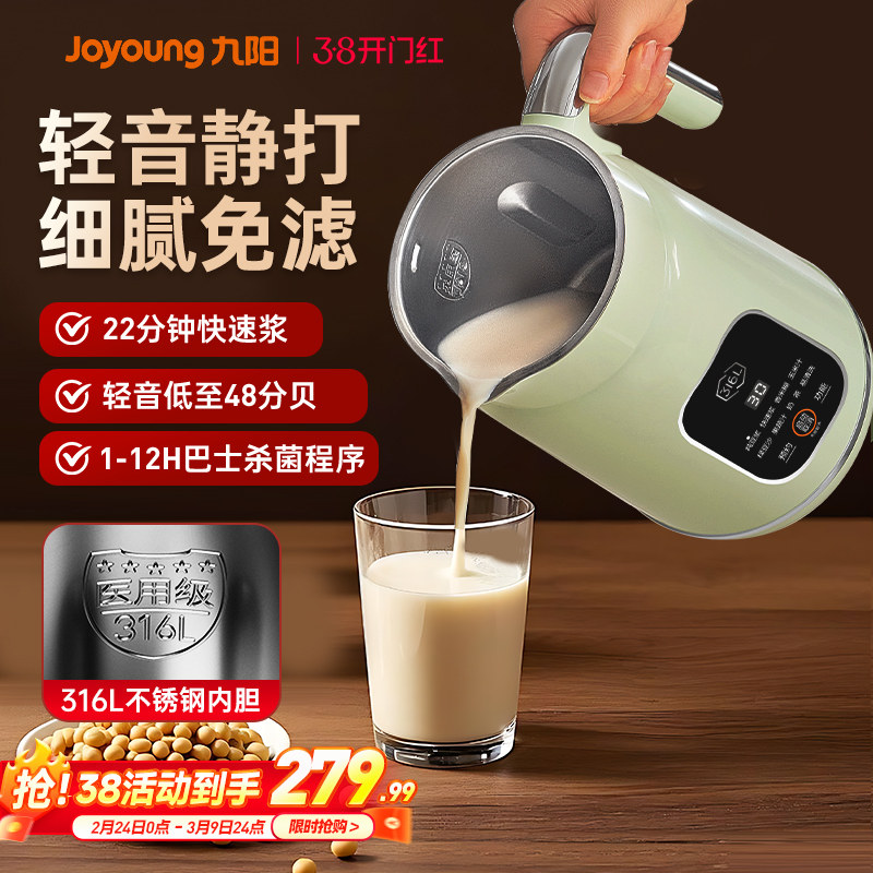 九阳豆浆机家用全自动轻音破壁机多功能免滤煮官方旗舰店正品新款