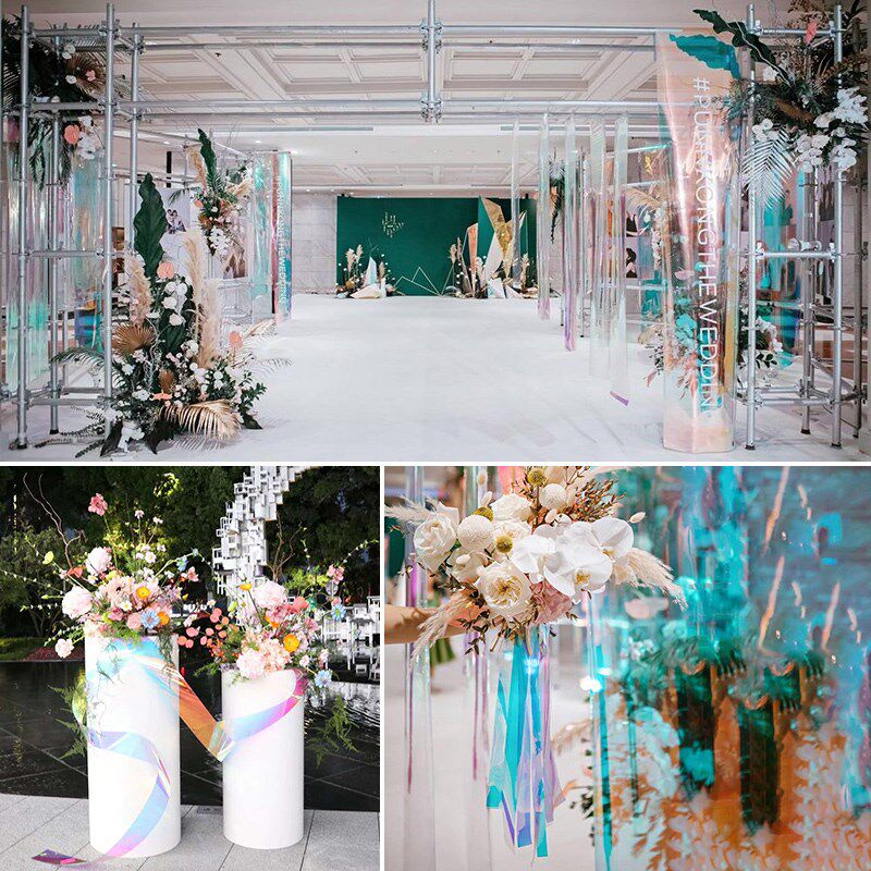 速发镜面地毯婚庆幻彩膜镭射纸七七色变自粘胶带彩虹膜荧光彩彩膜