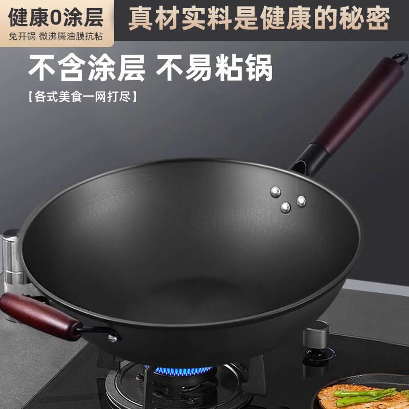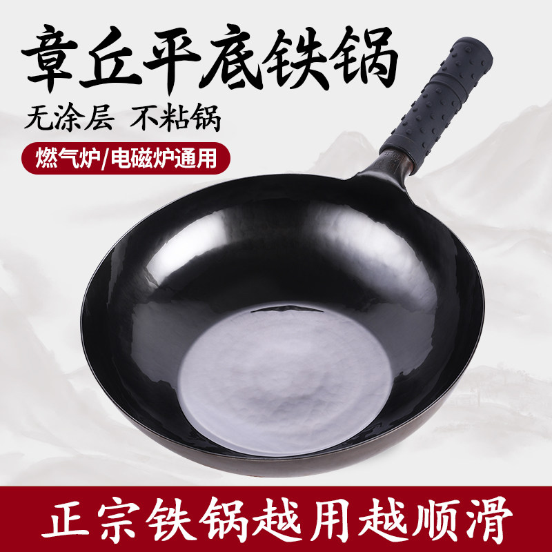 章丘老式平底铁锅炒菜锅家用官方旗舰炒锅不粘锅燃气灶电磁炉专用