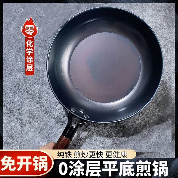 传统老式无涂层平底铁锅不粘锅煎锅防滑炒锅燃气灶电磁炉通用铁锅