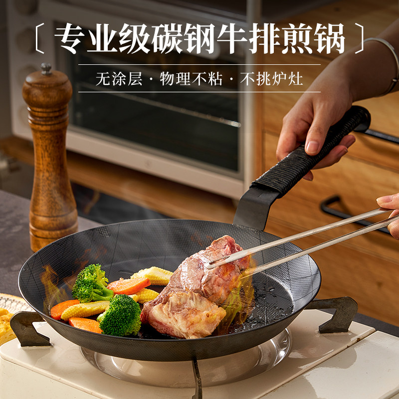 平底锅平底铁锅家用无涂层煎锅大小烙饼锅牛排煎蛋煤气燃气灶烤蓝