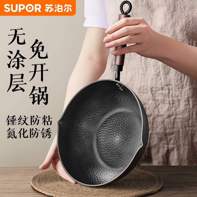 苏泊尔铁锅家用无涂层不锈炒锅燃气灶专用炒锅炒菜锅平底锅铸铁锅