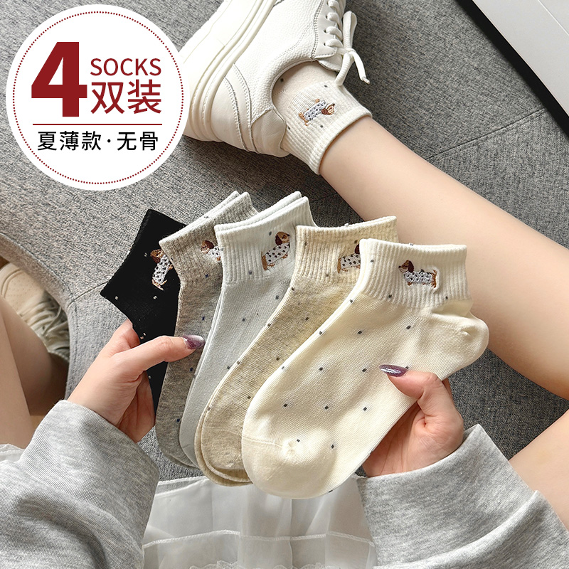 春秋季女款袜子纯棉短袜网眼透气短筒潮可爱浅口女袜夏季女士船袜