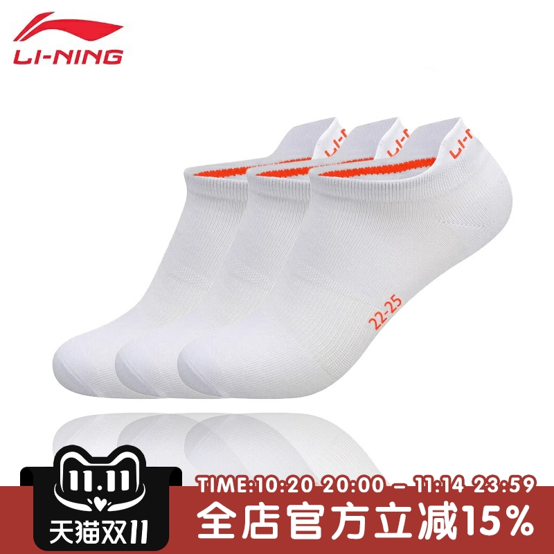 李宁袜子男士运动短袜青少年跑步中筒夏季吸汗透气女款棉袜薄白色