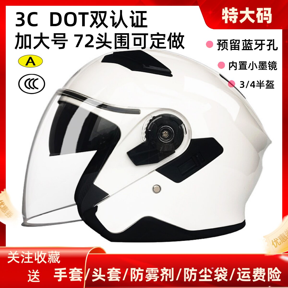 - 摩托车头盔 半覆式 电动车