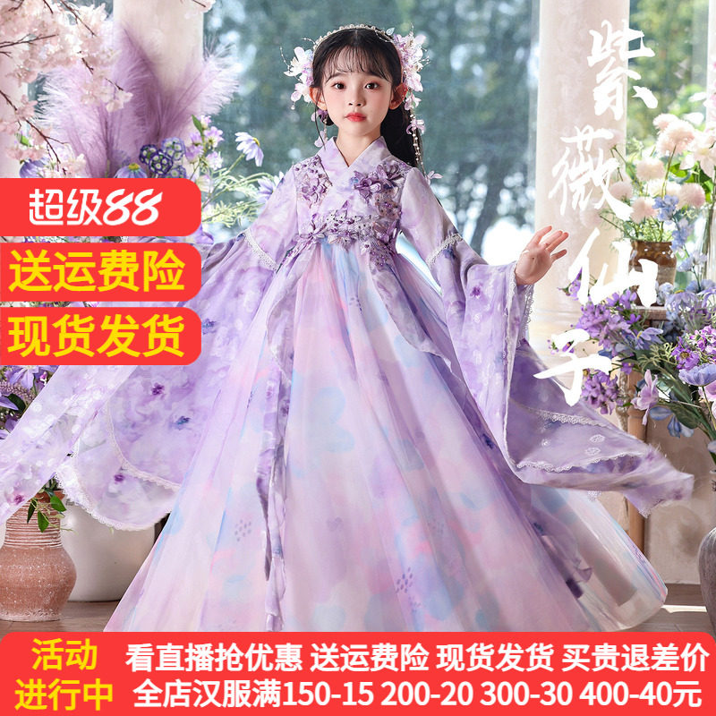 女童汉服春装2026新款中国风女孩古装儿童唐装春款古风紫色连衣裙