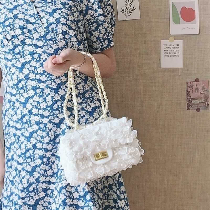 小众仙女2021春夏新款潮女包洋气花朵单肩手提斜挎链条包包小方包